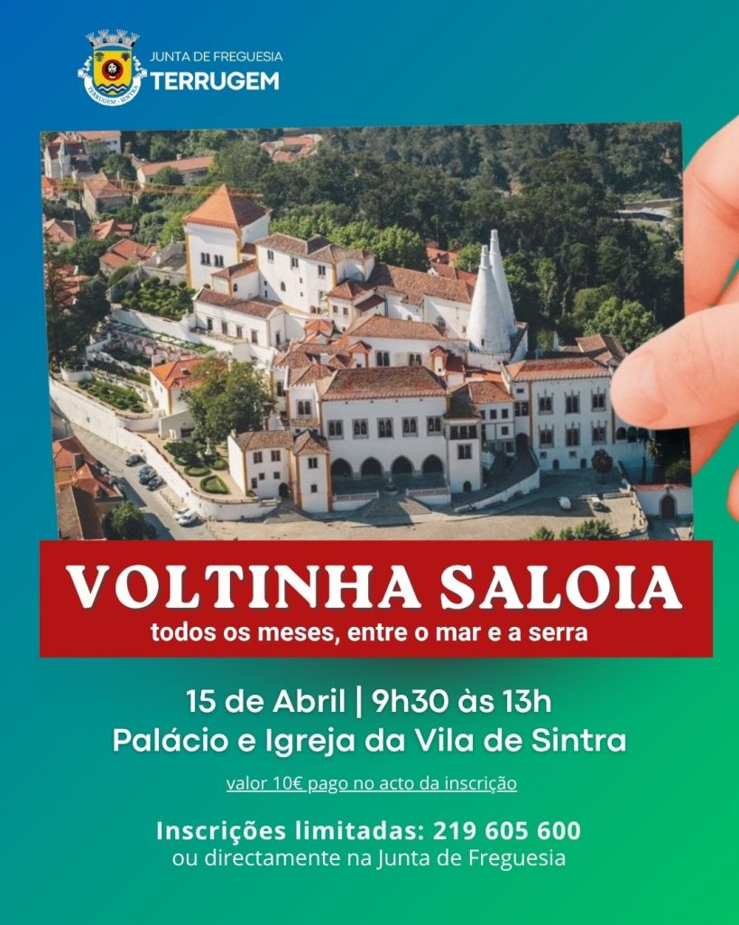 A atividade decorre entre as 09h30 e as 13h00, na Vila de Sintra, para uma visita ao Palácio Nacional e à Igreja de São Martinho, dois monumentos importantes no concelho. As inscrições têm um custo de 10 euros, são limitadas e podem ser efetuadas através do contacto telefónico 219 605 600 ou diretamente na Junta de Freguesia da Terrugem.
