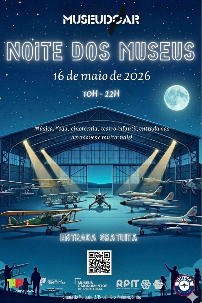 O Museu do Ar, em Sintra associa-se à iniciativa “Noite dos Museus”, que terá lugar no dia 16 de maio, com um programa diversificado que decorre entre as 10h00 e as 22h00, na Granja do Marquês, em Pêro Pinheiro.